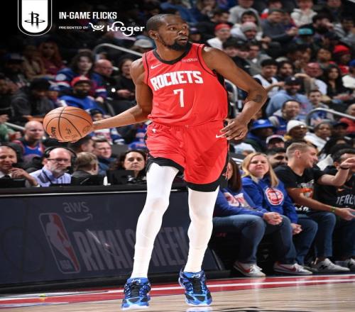 火箭队的杜兰特得到32分和7个篮板,他生涯命中三分球数超越杰森-特里升至历史第11位。申京得到19分和5次助攻,谢泼德得到18分,汤普森得到15分、9个篮板和7次助攻,史密斯得到11分、10个篮板和3次助攻。活塞队的杜伦得到18分和7个篮板,斯图尔特得到16分和5个篮板,霍兰德得到13分和6个篮板,坎宁安得到12分和8次助攻,奥萨尔得到12分和7个篮板,詹金斯得到10分和4次助攻。